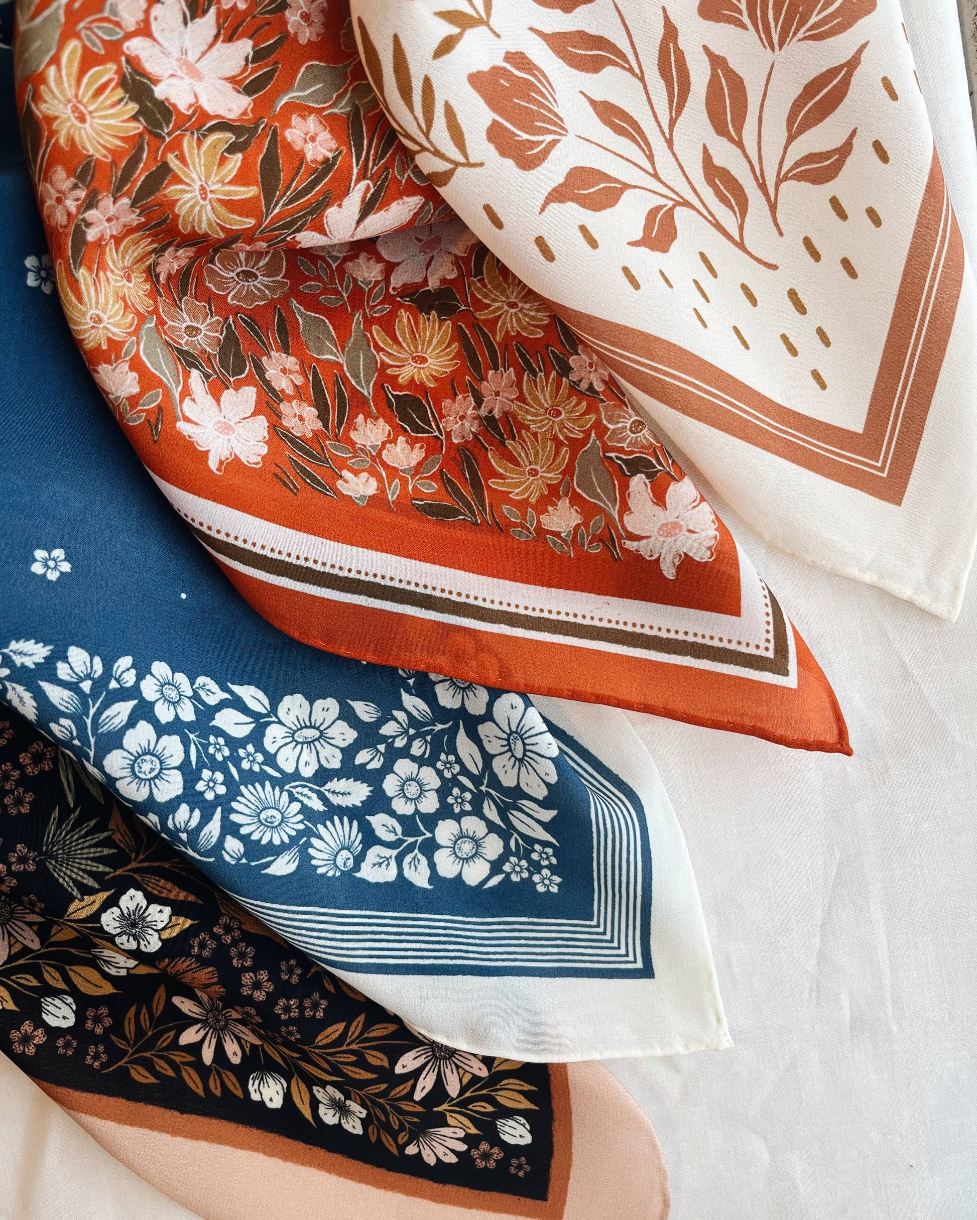 100% Silk Bandana Scarf - Desert Floral Western Earth Tones