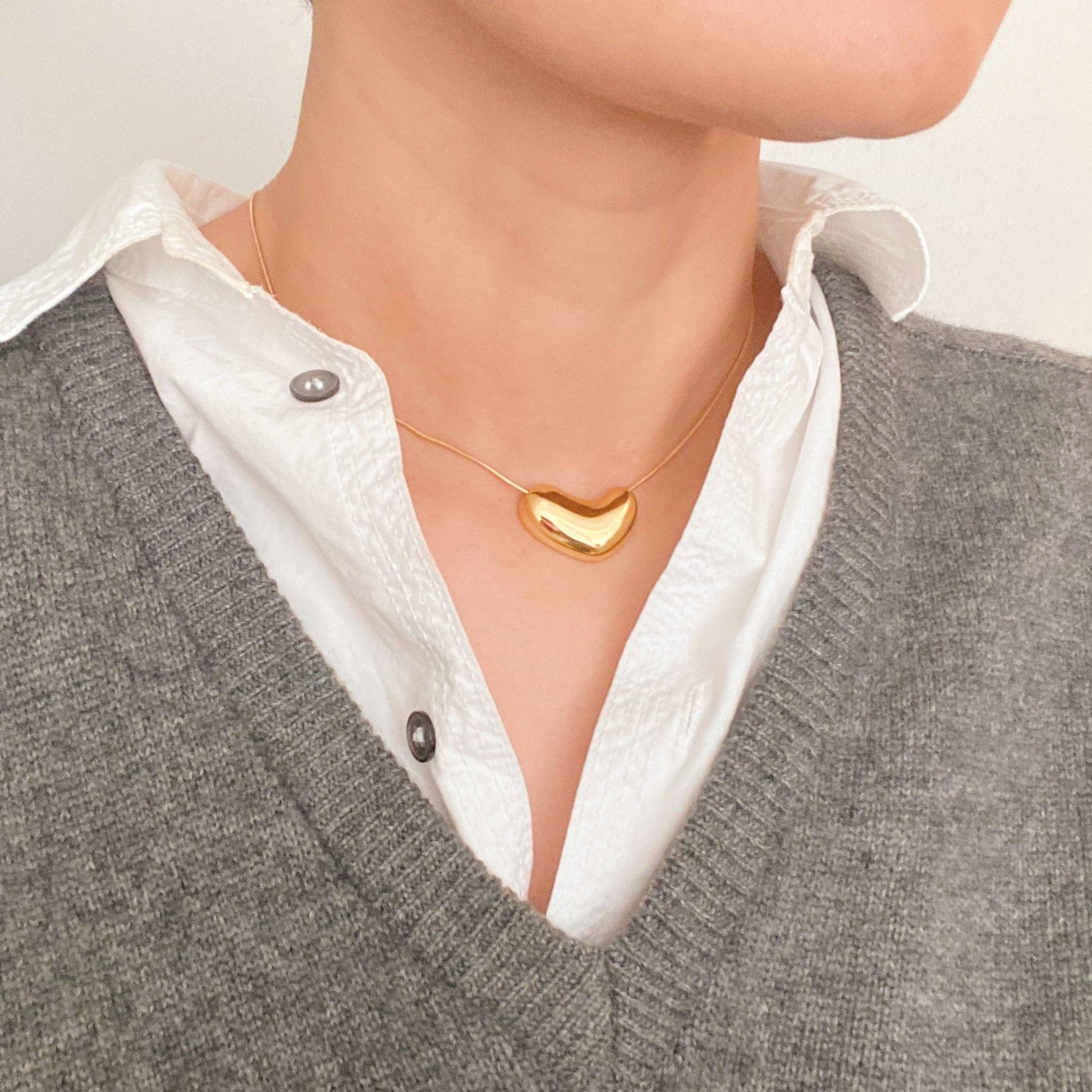 This Bold Molten Heart Necklace is as stylish as it is eye-catching. Featuring an impressive dimensionally rounded heart pendant hung on a round herringbone chain, it is sure to make any outfit stand out.