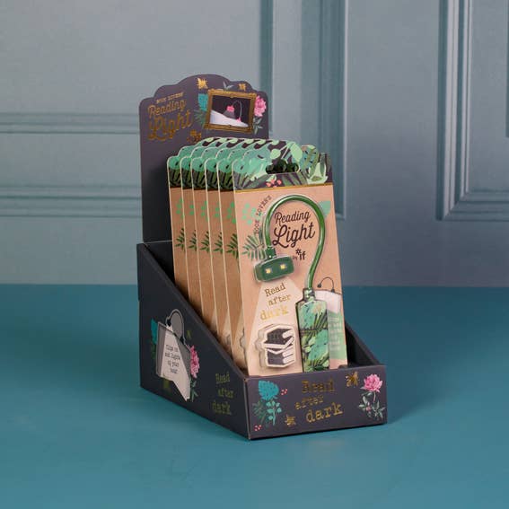 Lovely themed lights that clip on and light up your book! Our lovely little pocket sized lights are anything but boring. They have all the features that you would expect from a book light such as a good battery life, dimmable LED (2 actually) bulbs, a secure clip and bendy positionable neck...in a much nicer form and giftable packaging. Takes 1 x AAA battery in an easy-to-change compartment. Battery included! • With adjustable light settings and flexible neck - find your own comfy reading position. •