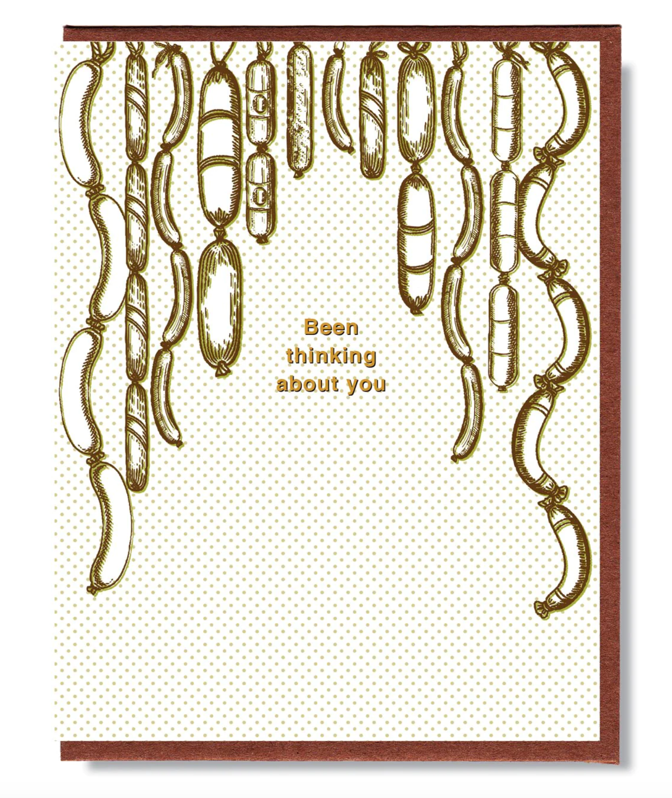 "Been thinking about you" takes on new meaning when paired with illustrated sausages.