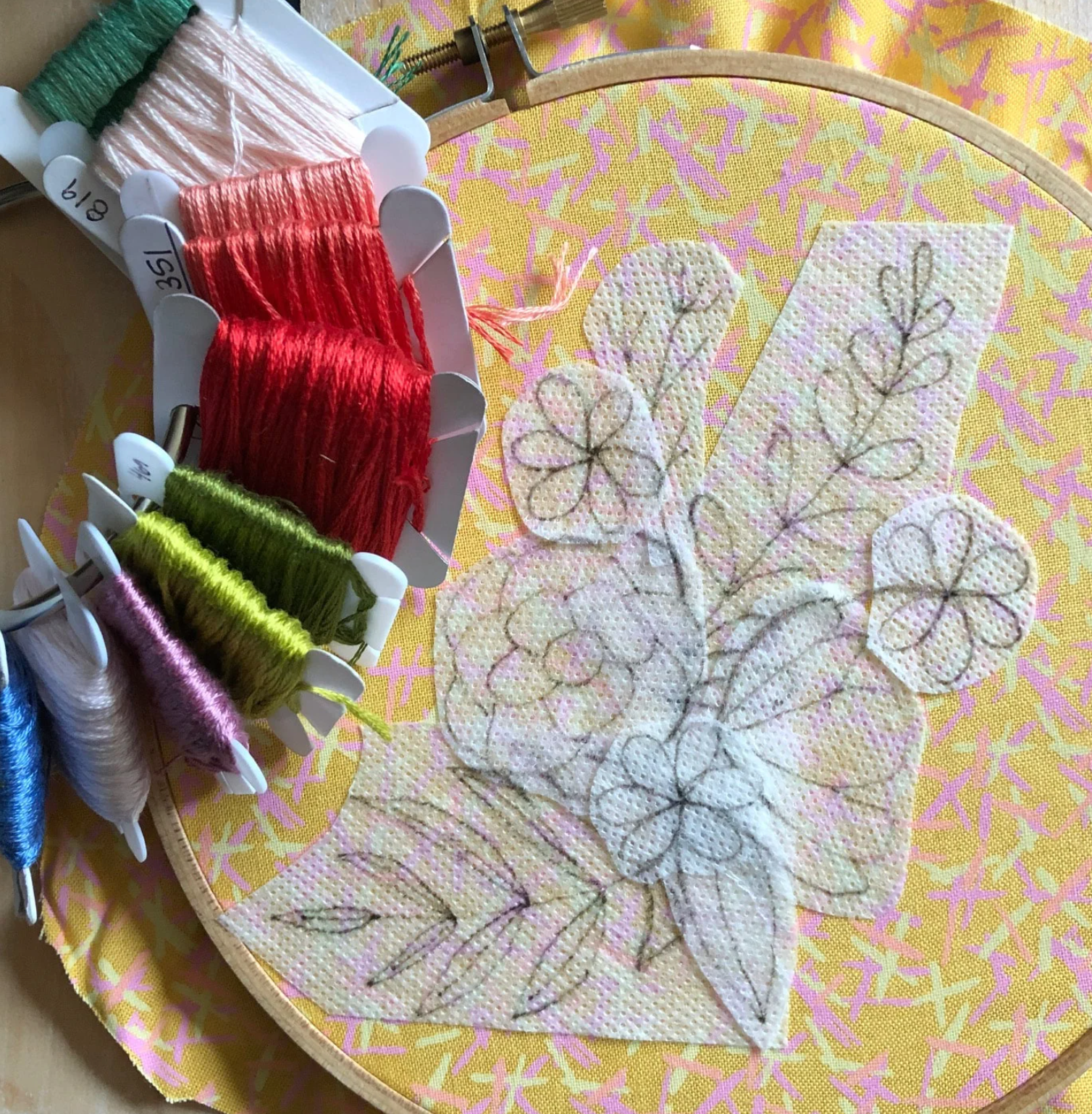 Peel, Stick, and Stitch embroidery designs by M Creative J are perfect for adding all things floral to your life.. Whether you want to add embroidery to a shirt, a jacket, or leave them displayed in a hoop, these designs are the perfect compliment. This kit is designed for those who already have many sewing supplies and love choosing their own colors. Each kit comes with 9 different botanical designs and suggested stitches.