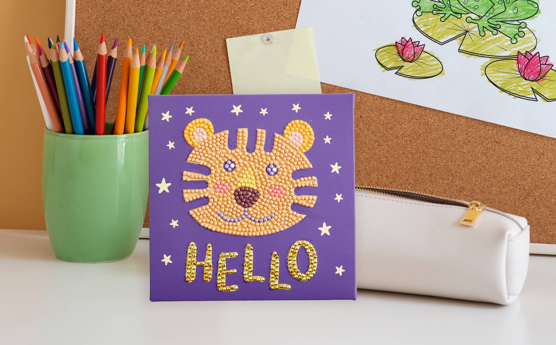 Use the complete pictorial instructions using 771 dotz to create Hello Tiger! a beautiful color printed DOTZ BOX with no framing required for beginners. • Product Dimensions/Weight: 5.85 L x 5.85 W x .975 H / 0.15 lb • Inner Pack Dimensions/Weight: 6.5 L x 6.5 W x 4.5 H / 1.10 lb • Age Grade: 6+