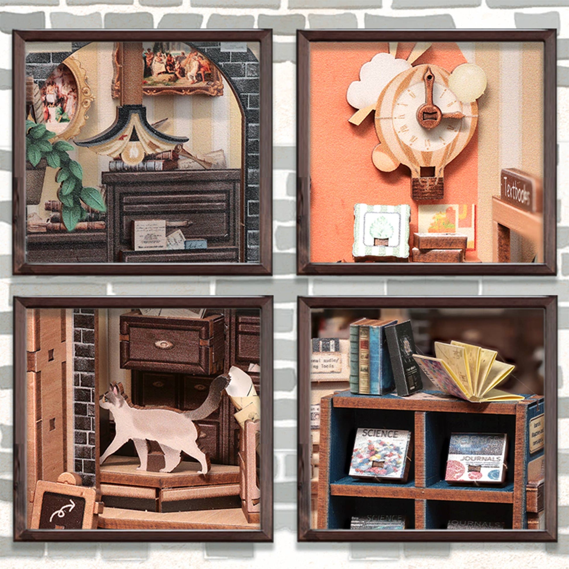 From the intricate woodwork of the storefront to the tiny posters, plants, and meticulously arranged reading materials inside, every piece invites you to slow down, take your time, and craft a scene that feels like a sanctuary for the soul. Whether you place it on your bookshelf or gift it to a fellow book lover, this book nook transforms any space into a story waiting to be told.