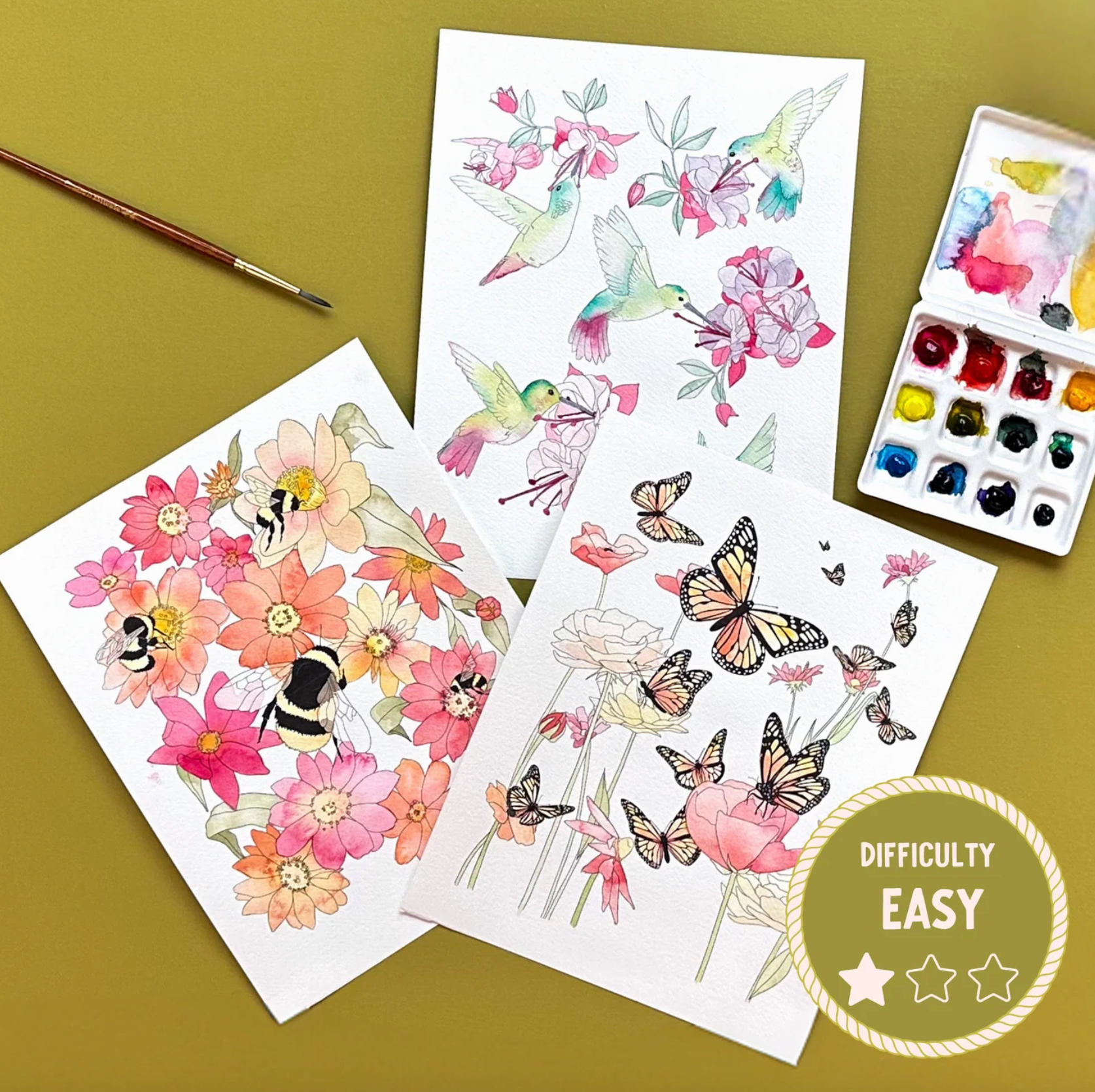DIY Paint Kit - Large - Playful Pollinators (Splatter & Bloom) Watercolor Intermediate