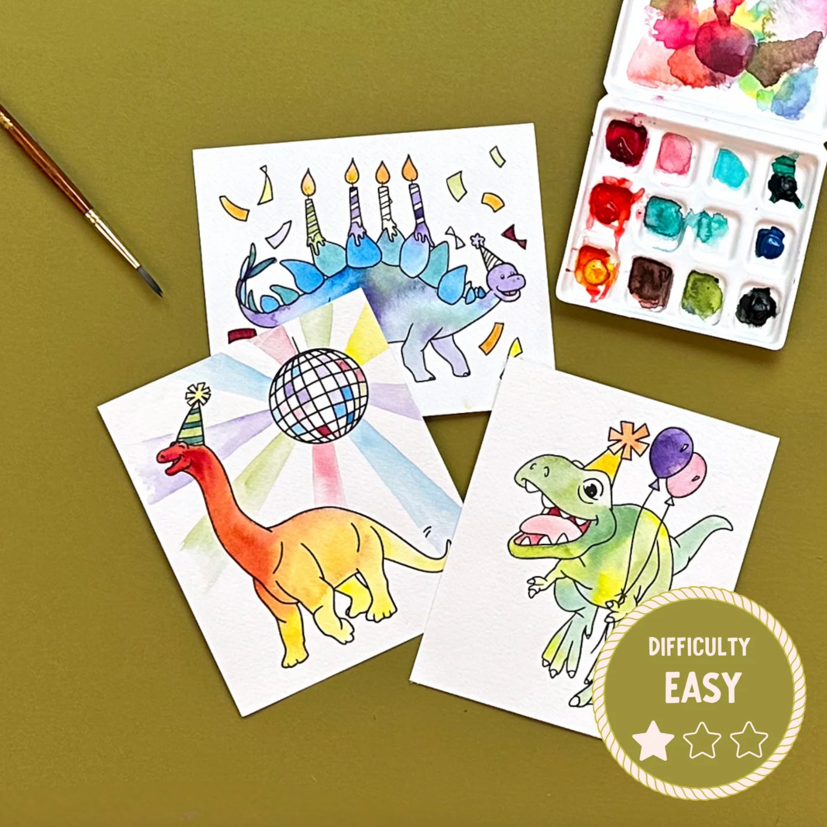 DIY Paint Kit - Mini - Dino Party (Splatter & Bloom) Watercolor Easy