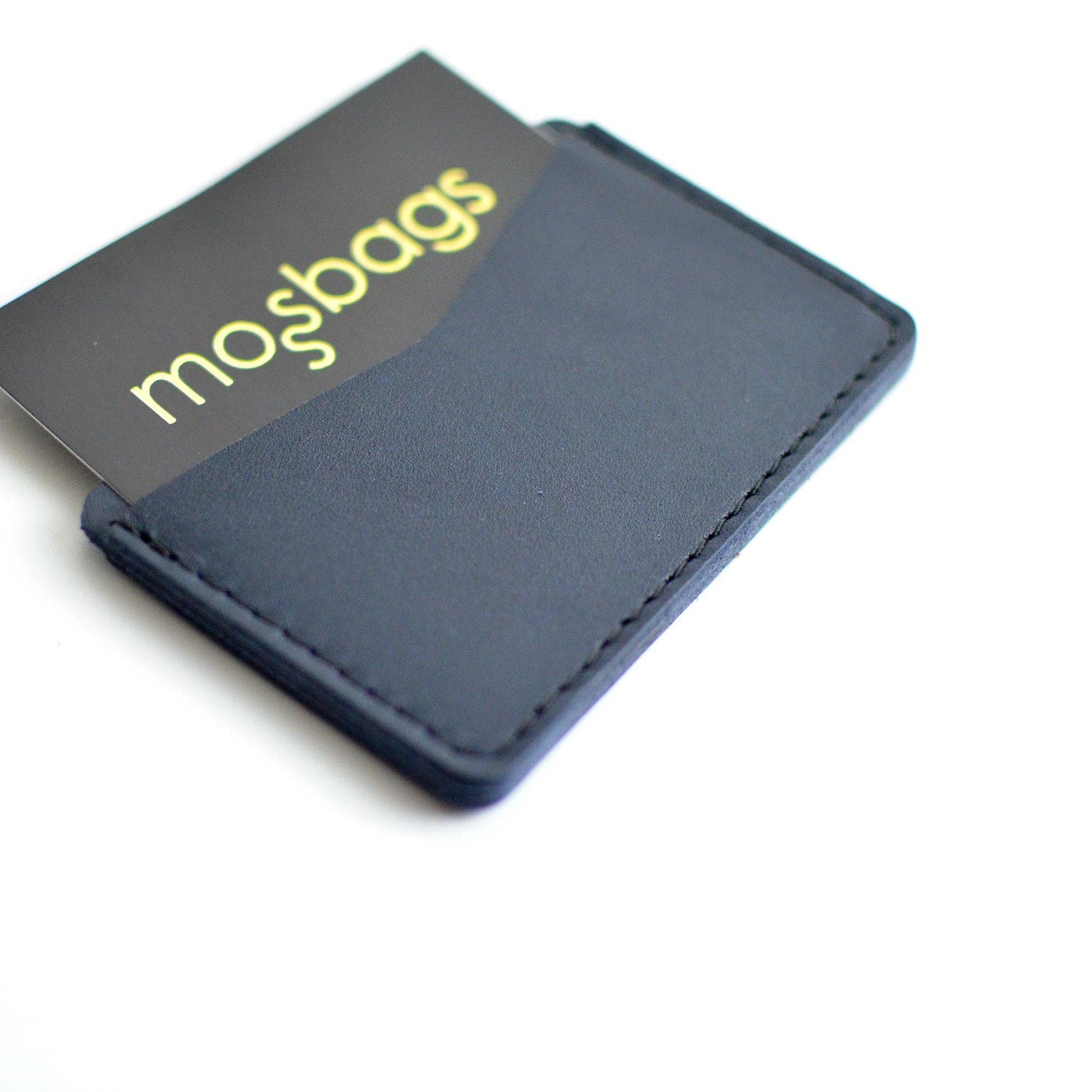 Double Sided Card Holder - Navy Blue Leather