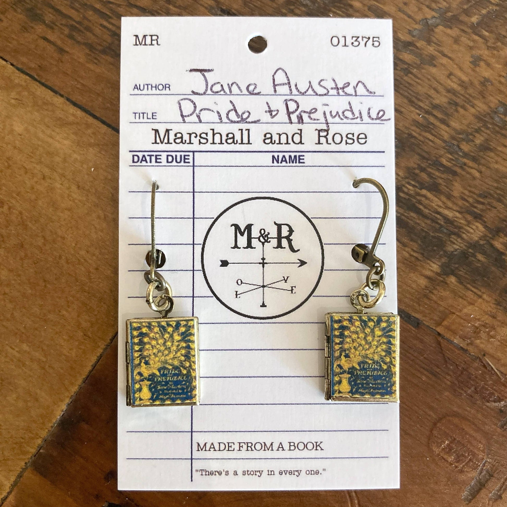 Earrings Book Locket Pride and Prejudice - Vintage Peacock