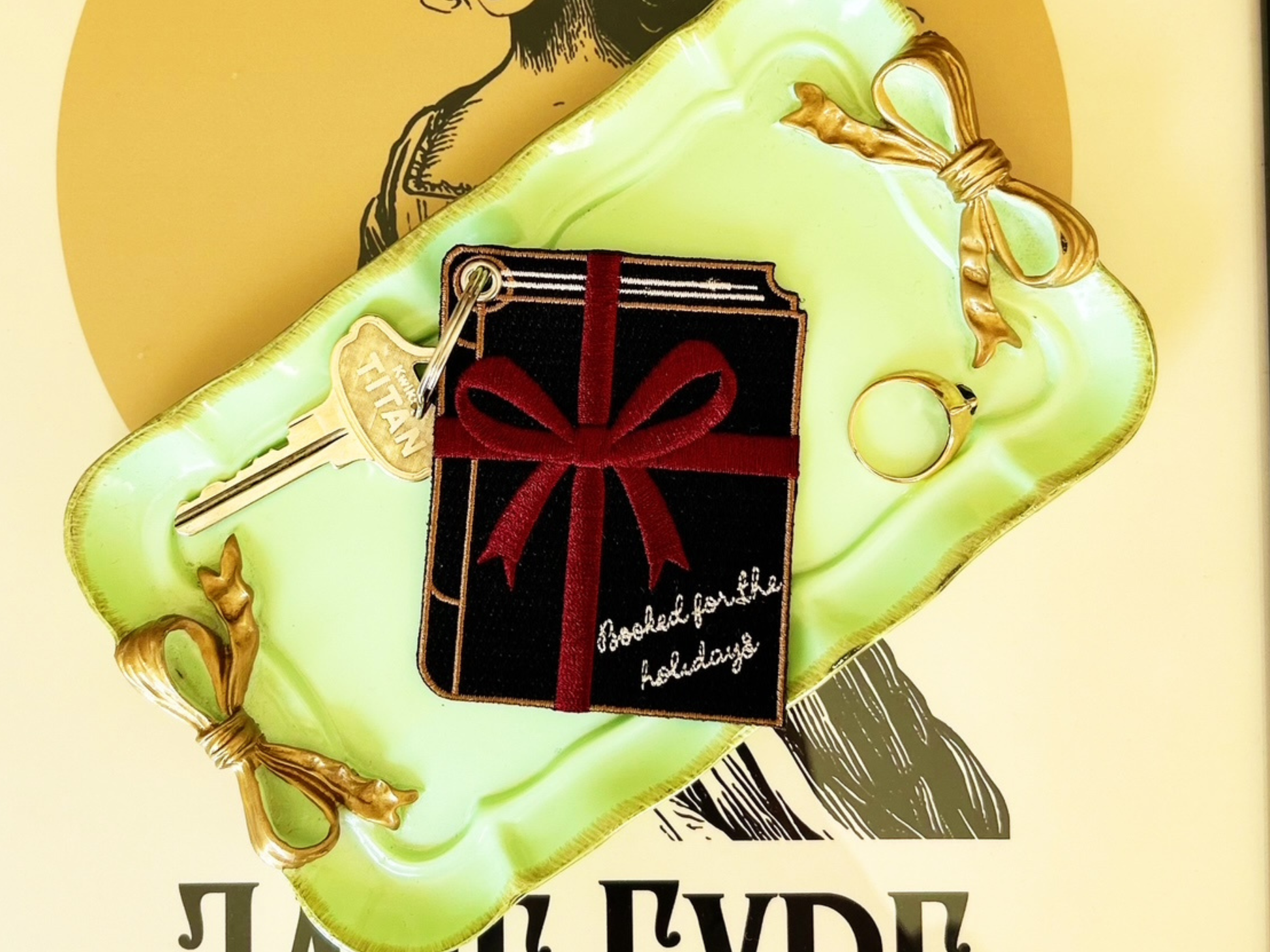 Embroidered ornament, keychain, and gift tag for book lovers and readers – the perfect multi-use holiday accessory that brings warmth, story, and charm to any gift or celebration. This embroidered canvas piece features a navy blue book with a red ribbon and the phrase “Booked for the Holidays” stitched in the corner. Whether you're wrapping a special read, decking out your tree, or gifting a favorite teacher or book club pal, this soft and stylish tag adds a meaningful literary touch. Each item includes a keyring, making it ready to use as: A reusable gift tag (wrap it around a book or bottle!) A Christmas ornament (just replace the ring with ribbon) A charming embroidered keychain for daily use