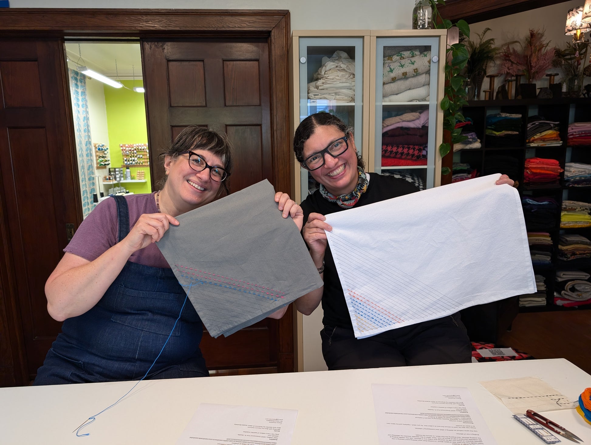Each student will take home a set of sashiko needles, 2 skeins of sashiko thread, and a cotton tea towel.