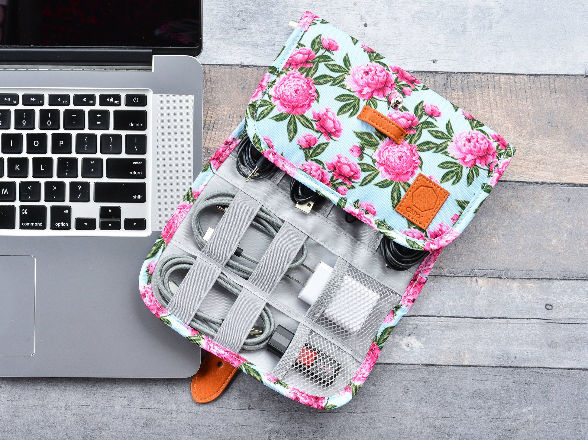 Floral Electronics Organizer Travel Bag - Travel Accessories