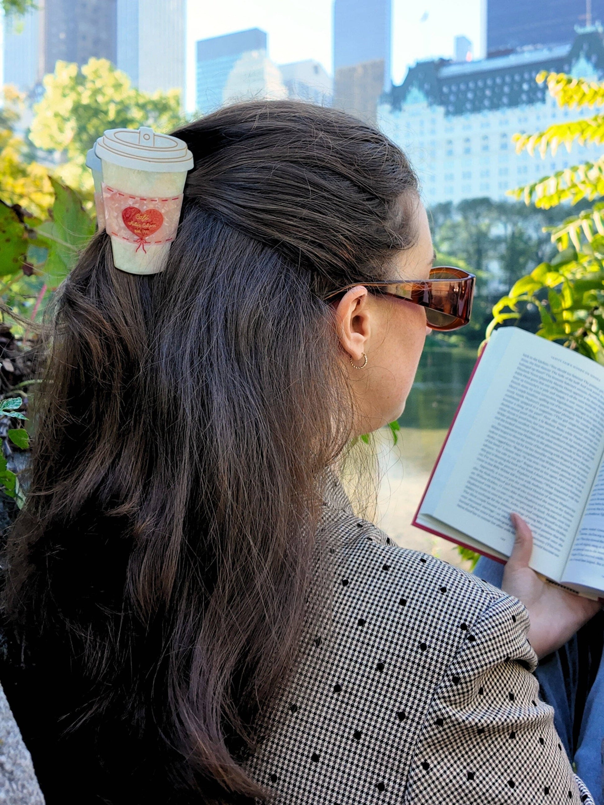 Hand-Painted Cafe Coffee Cup Heart Claw Clip | Eco-Friendly