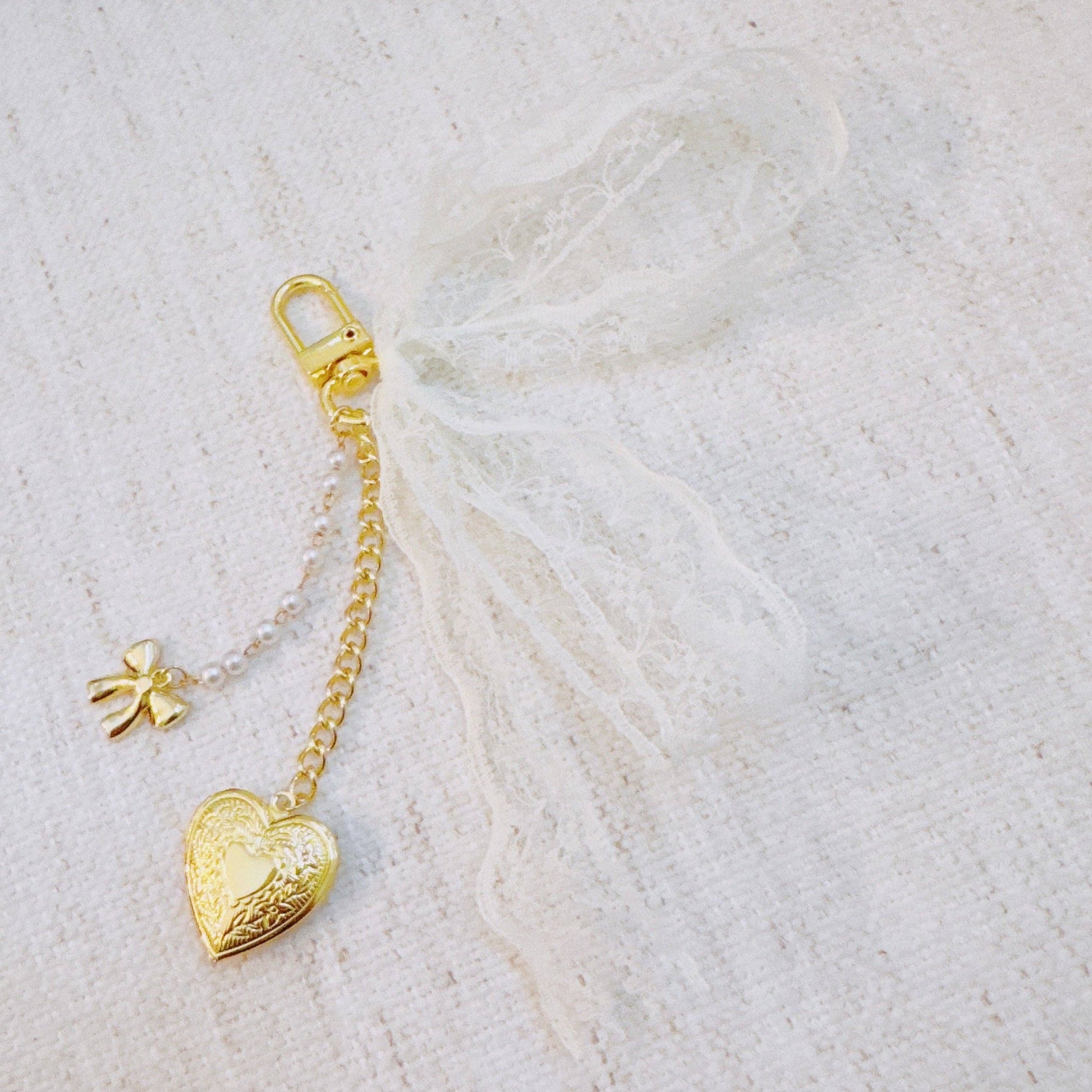 Sweet and romantic, the Lace & Love Heart Bag Charm adds a feminine finish to any accessory. Designed with delicate lace details and a heart motif, this charm brings a dreamy touch to your handbag or tote.