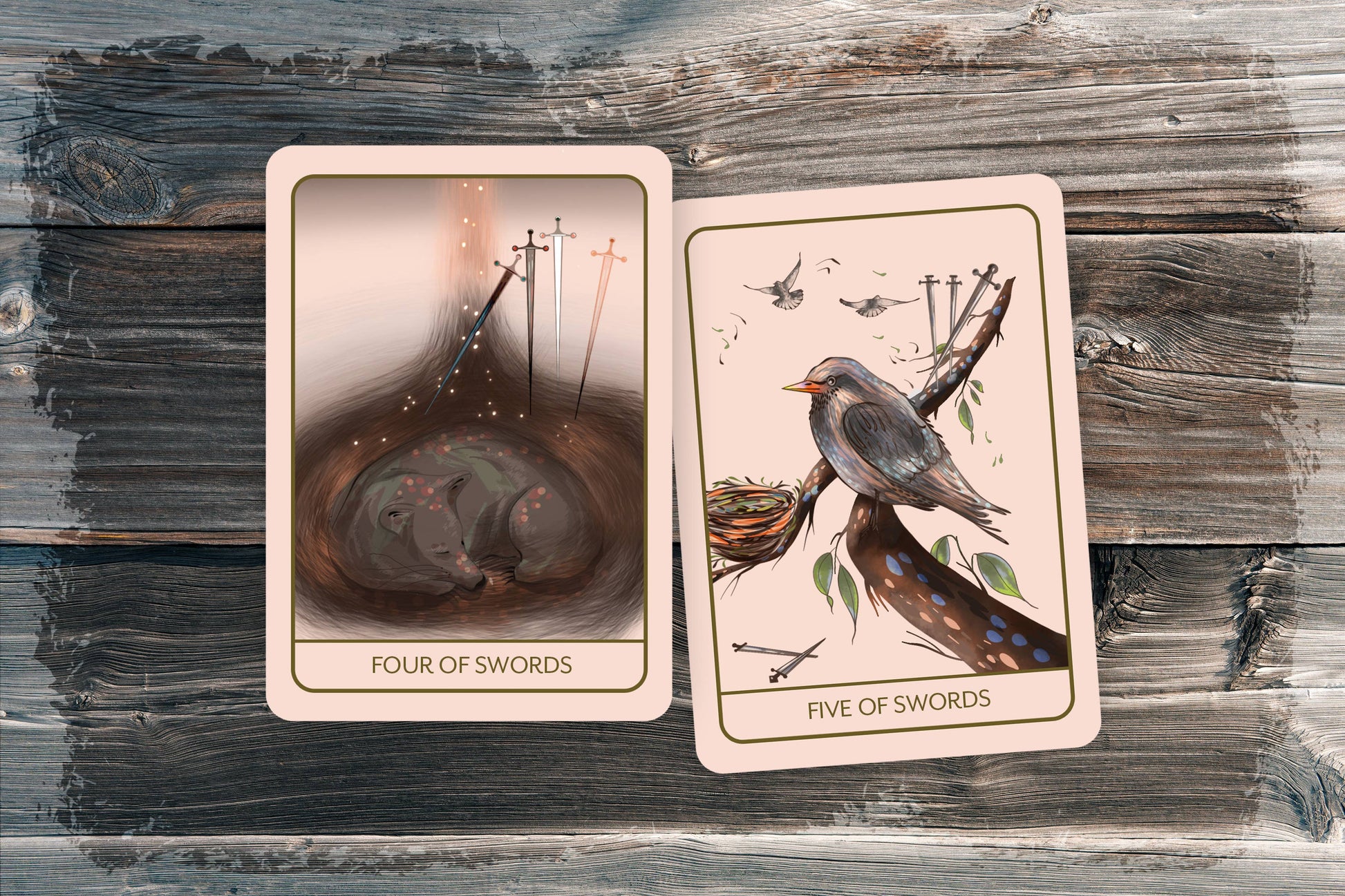 Introducing Orenda Tarot, a bridge-sized tarot deck presenting a unique and whimsical take on the Rider Waite Smith tarot! I'm thrilled to introduce this playful and captivating nature deck, infused with enchanting animals, flora and fauna. Each card depiction embodies whimsy, heart, and soul, making it a tarot deck that will be cherished by individuals all over the world.