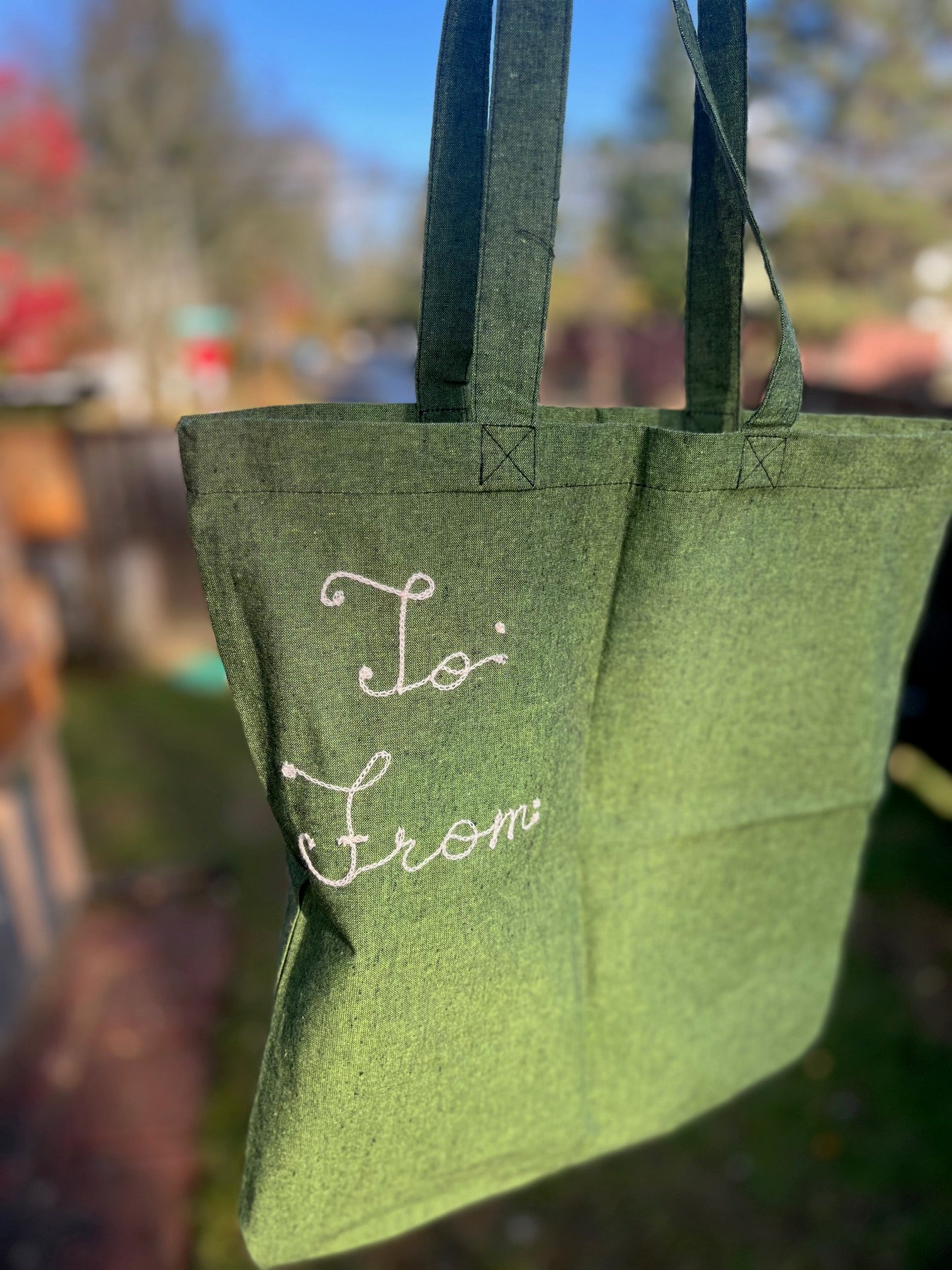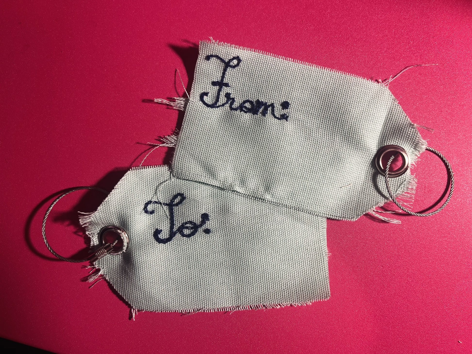 Bring your own item or buy something to be embroidered by Chain Stitch Massacre: $20/design or word.