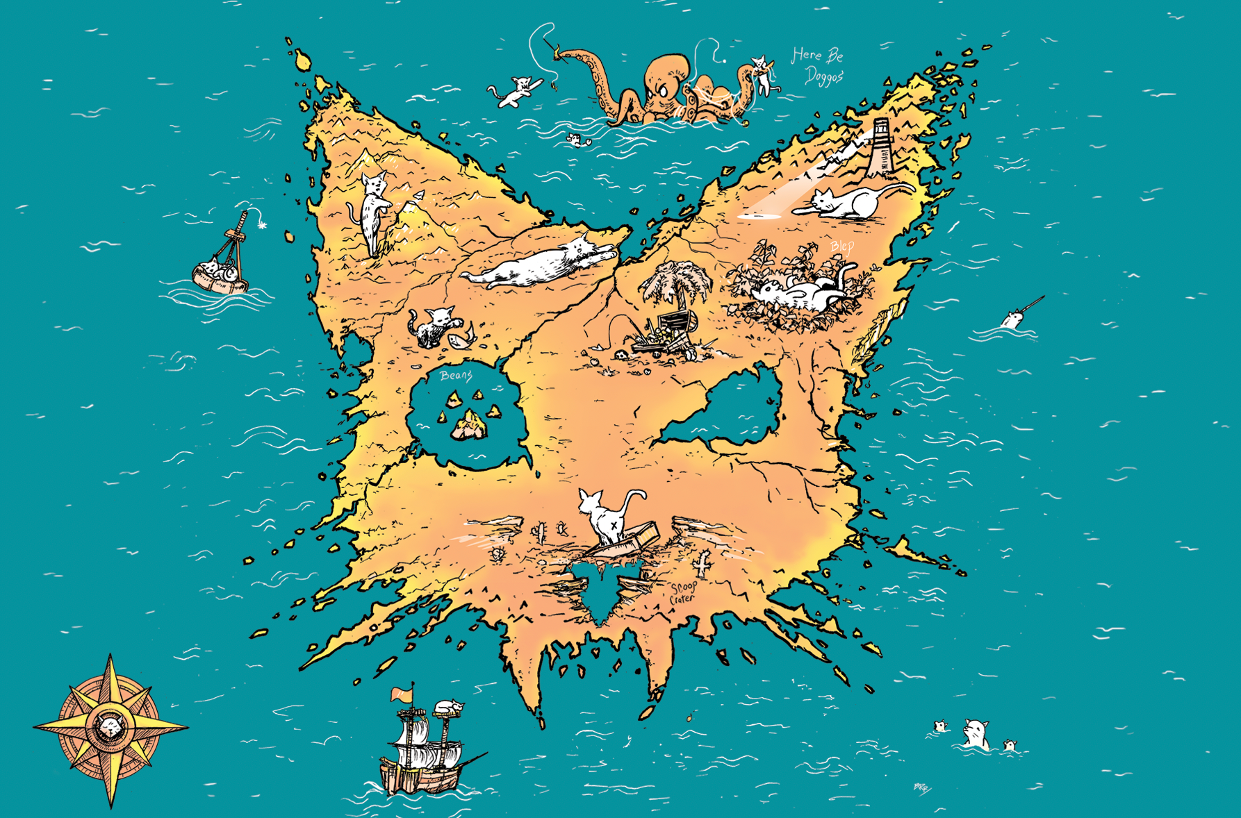 The perfect gift for all the map making cat lovers in your life! Too specific? We think other people will probably like it too. Find all the hidden cats and cat related goofs in this cat shaped map. There’s toe beans, bleps, a litter box and one kitty doing a long.