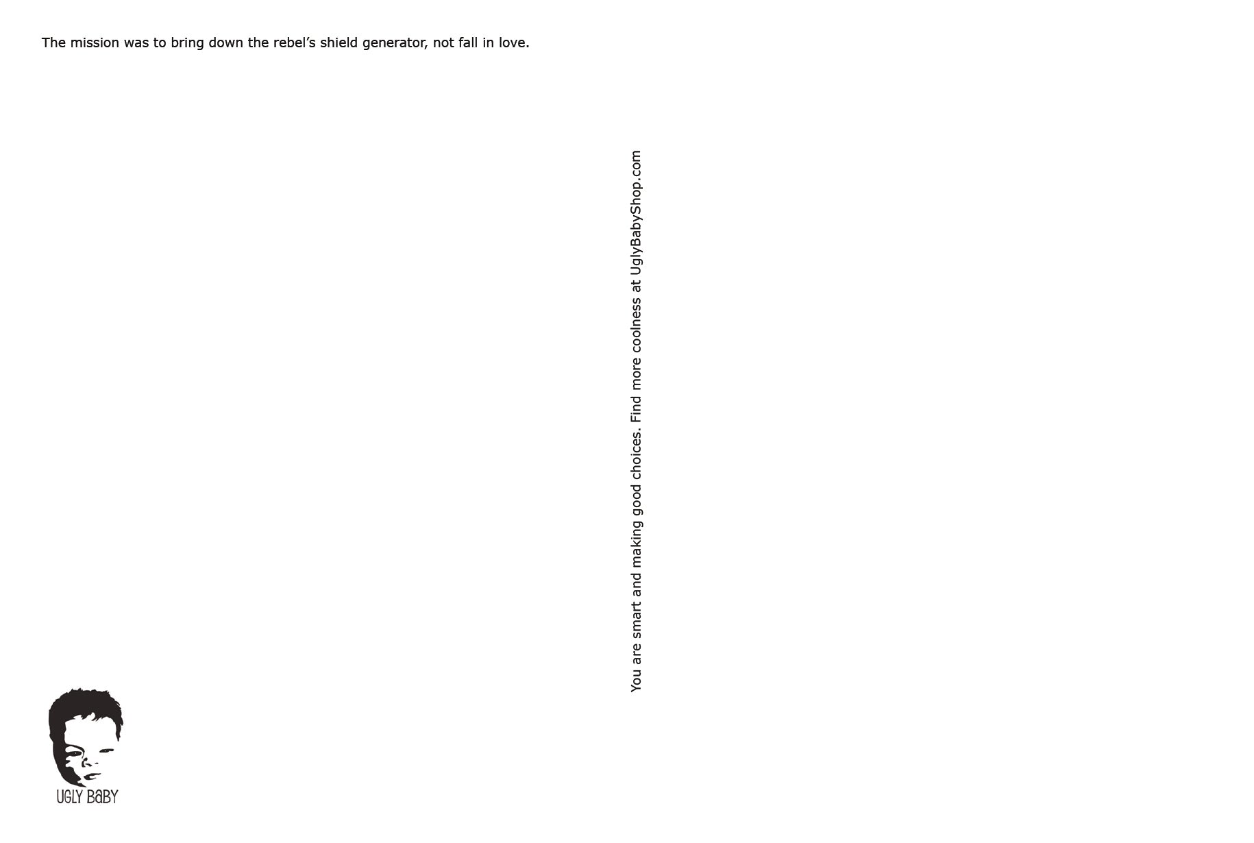 On the back it says, "The mission was to bring down the rebel's shield generator, not fall in love."