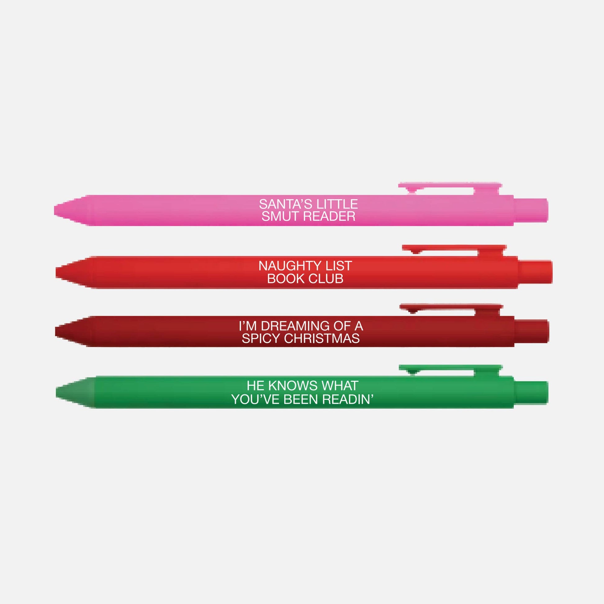 Spicy Bookish Holiday Pen Set – 4-Pack Pens for Smut Lovers