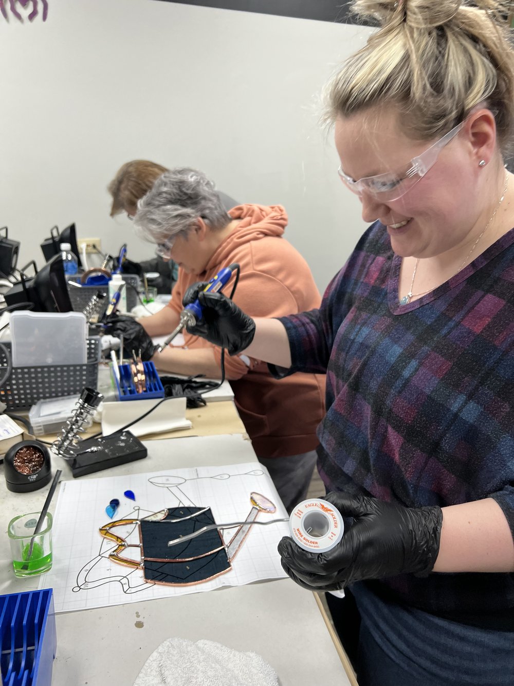 At the beginning of class, we will cover best safety practices working with stained glass, and briefly cover the tools and materials you will be using before diving in.
