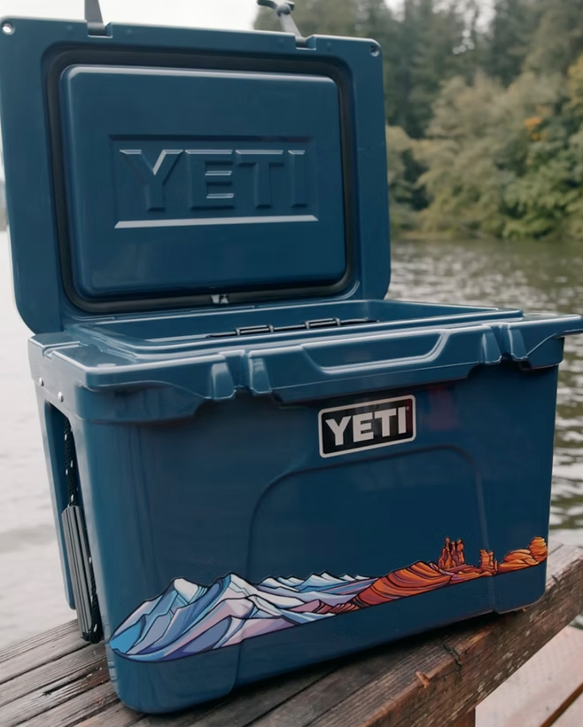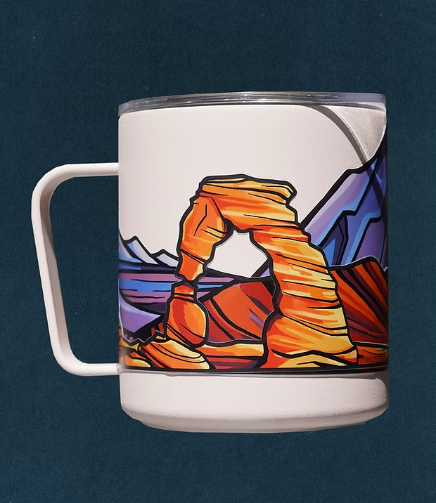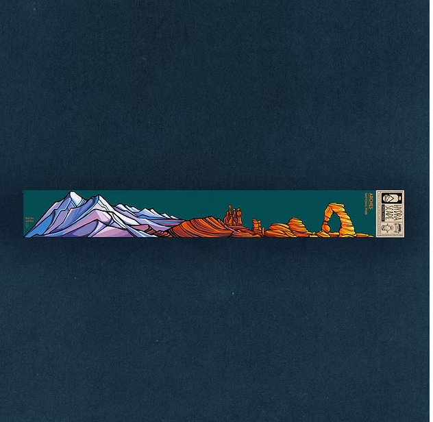 Arches is a landscape filled with contrasts, from the red and orange rock formations flowing against the blue sky to purple peaks in the distance framed by sandstone archways. It is these natural contrasts of color and pattern that make this sticker one of our favorites! Arches is on Ute land.