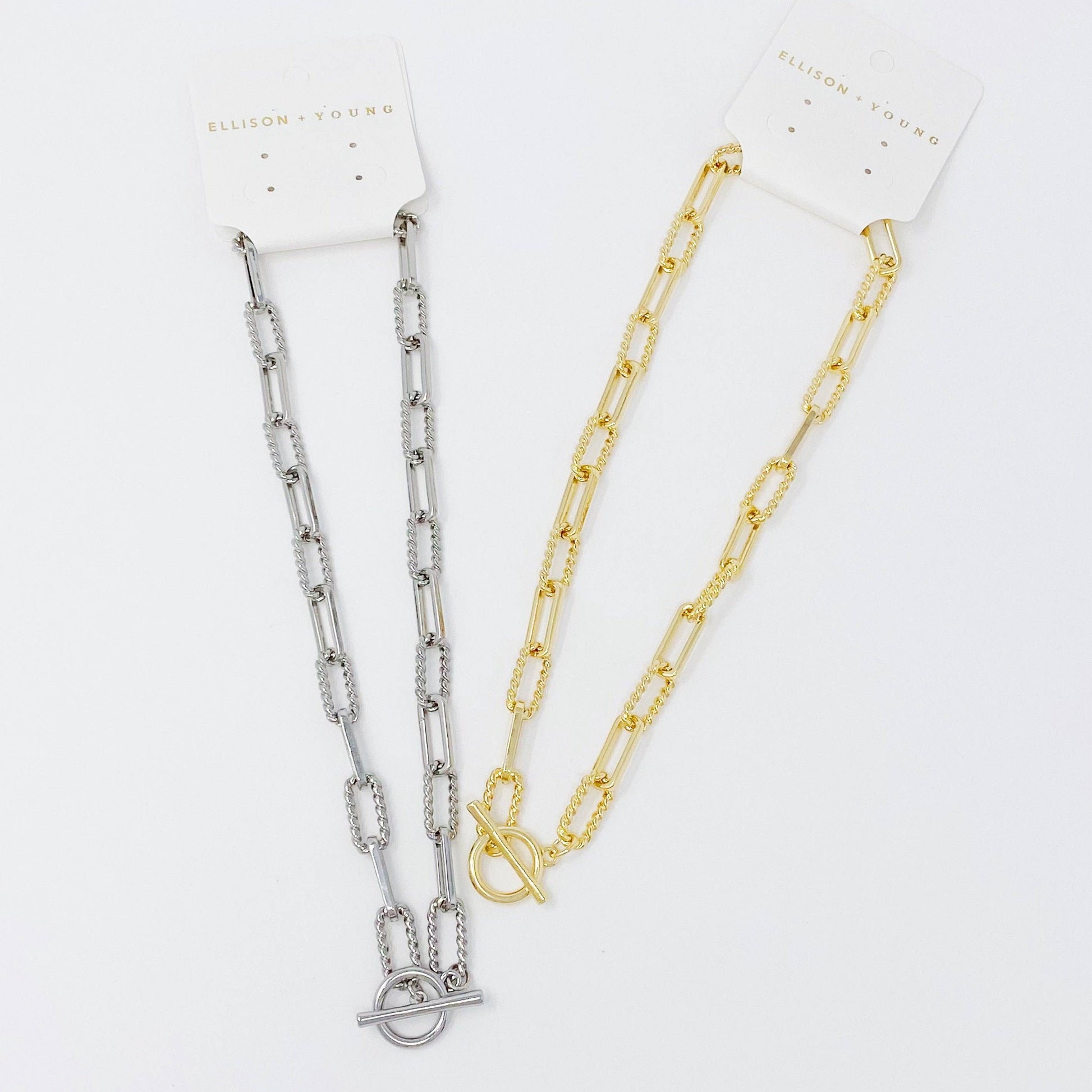 The perfect everyday chain necklace! Easy toggle clasp. Great to layer with other necklaces! Looks chic and trendy with alternating cabled texture link and plain.