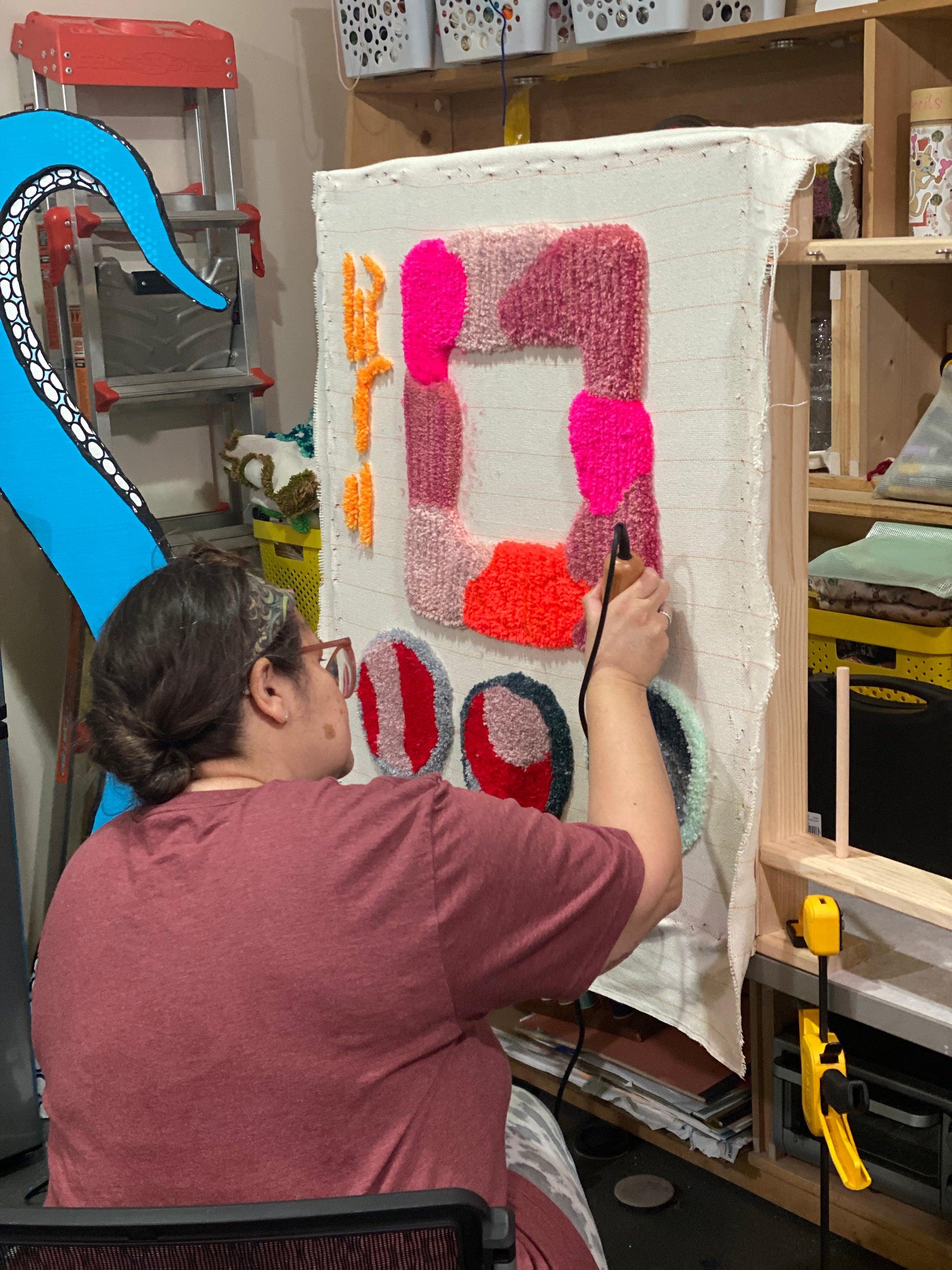 - We will use acrylic yarn and the cut pile setting on the tufting guns. We will have yarn available for you - but if you would like to use something specific, you are welcome to bring size 4 acrylic yarn.